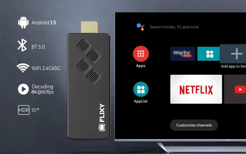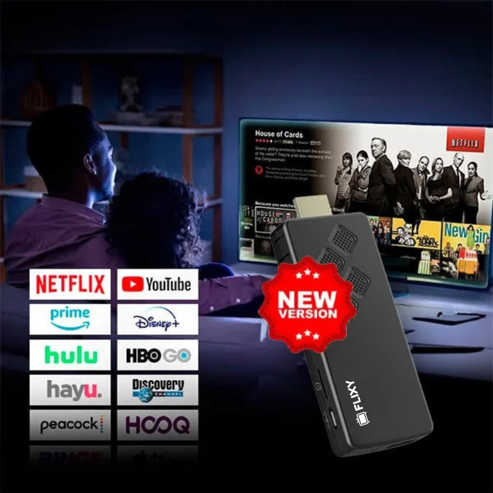 Flixy ist mit fast allen Fernsehgeräten mit HDMI-Anschluss kompatibel und unterstützt Tausende von Kanälen und Anwendungen, was es zu einer vielseitigen und cleveren Ergänzung für jedes Home Entertainment-System macht.